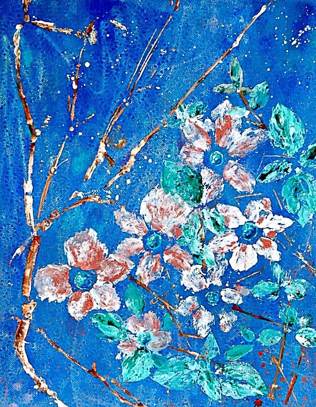 All paintings in acrylic paint on canvas at a minimum of 12×12 inch The Moon and It’s Star, Acrylic on Canvas, 12×12 inLuminous Maple Leaf, Acrylic on Canvas, 12×24 inMagical Dew Drop Tree, Acrylic on CanvasPurple Lights, Acrylic on Canvas, 12×24 inCity Garden, Acrylic on Canvas,Aurora Magic, Acrylic on Canvas, 12×24 inchDogwood in Turquoise. Acrylic on Canvas 16×14 inLightness, Acrylic on Canvas, 11×14 inchThree Ferns, Acrylic on Canvas 16×14 in